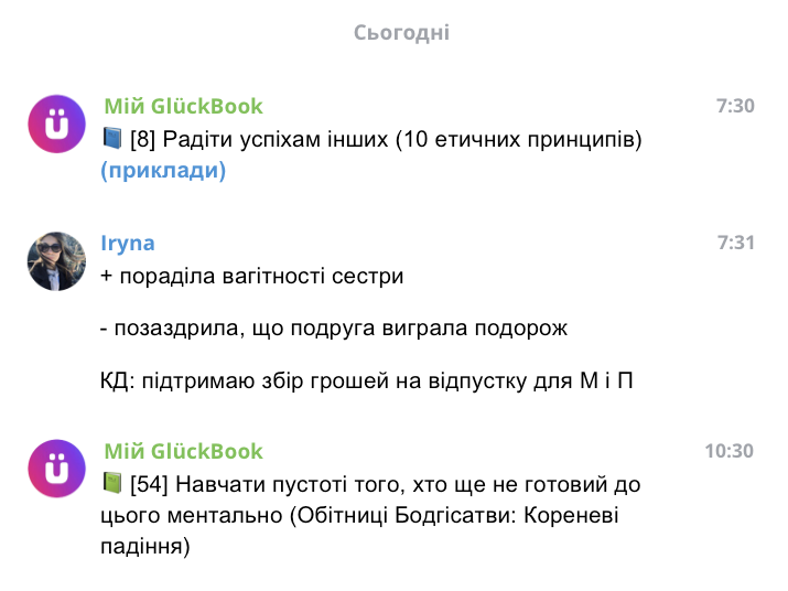 Асистент надсилає повідомлення 6 разів на день (о 7:30, 10:00, 12:30, 15:00, 17:30 і 20:00) за часом встановленого Вами часового поясу (GMT).